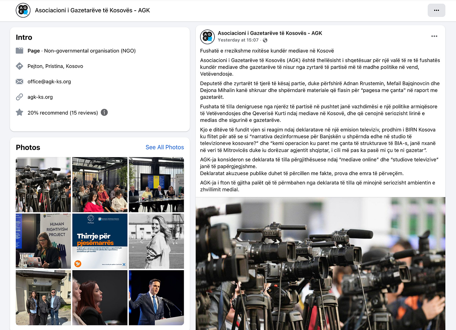Kosovo Journalists Association Facebook Statement, March 23, 2026.