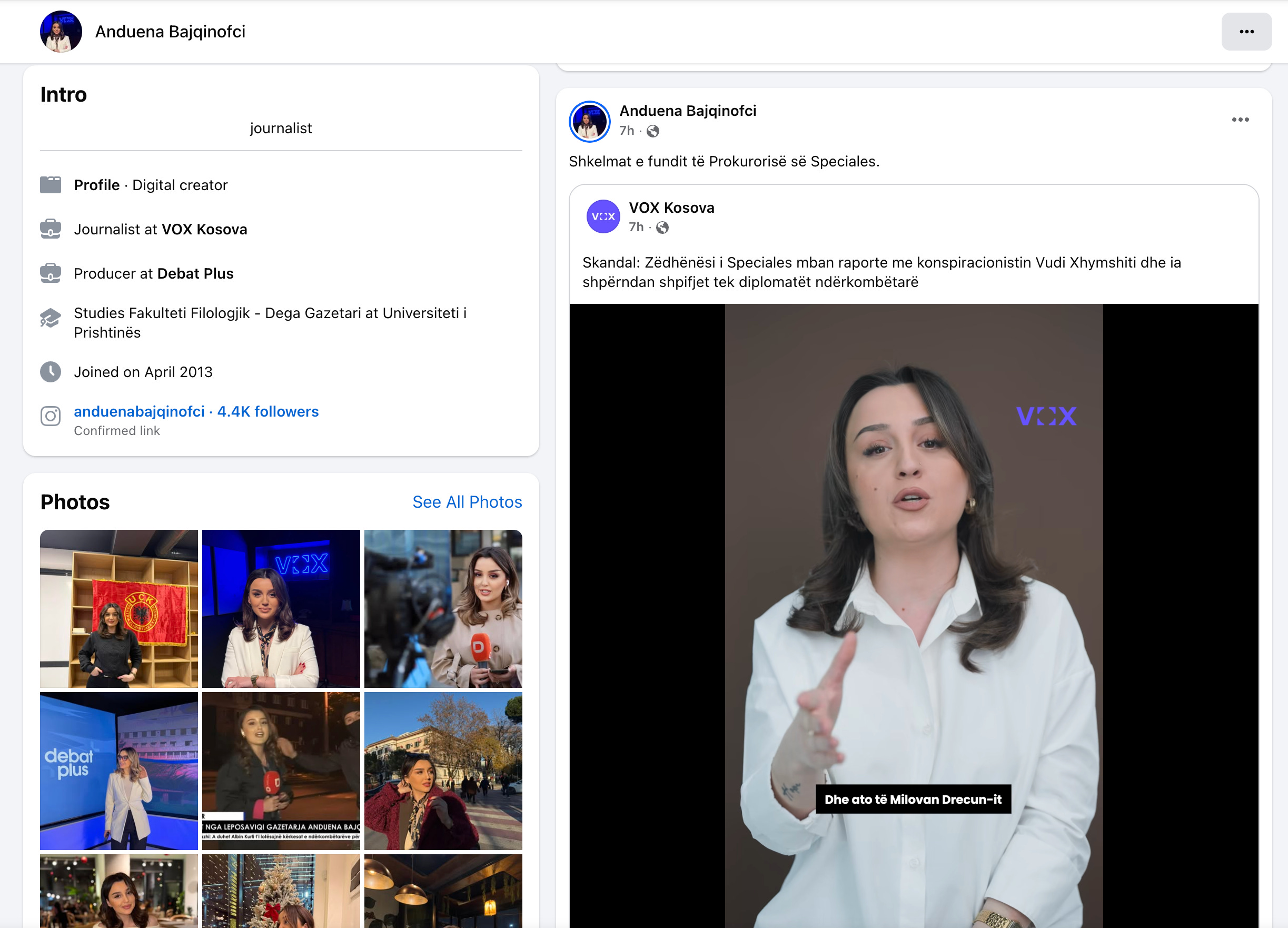 Now, on 22 February, VOX Kosova aired5 what I can only describe as a hit piece packaged as news, two minutes and forty seconds of insinuation designed to shift the question away from what I reported and onto whether I am allowed to exist in the public sphere at all.