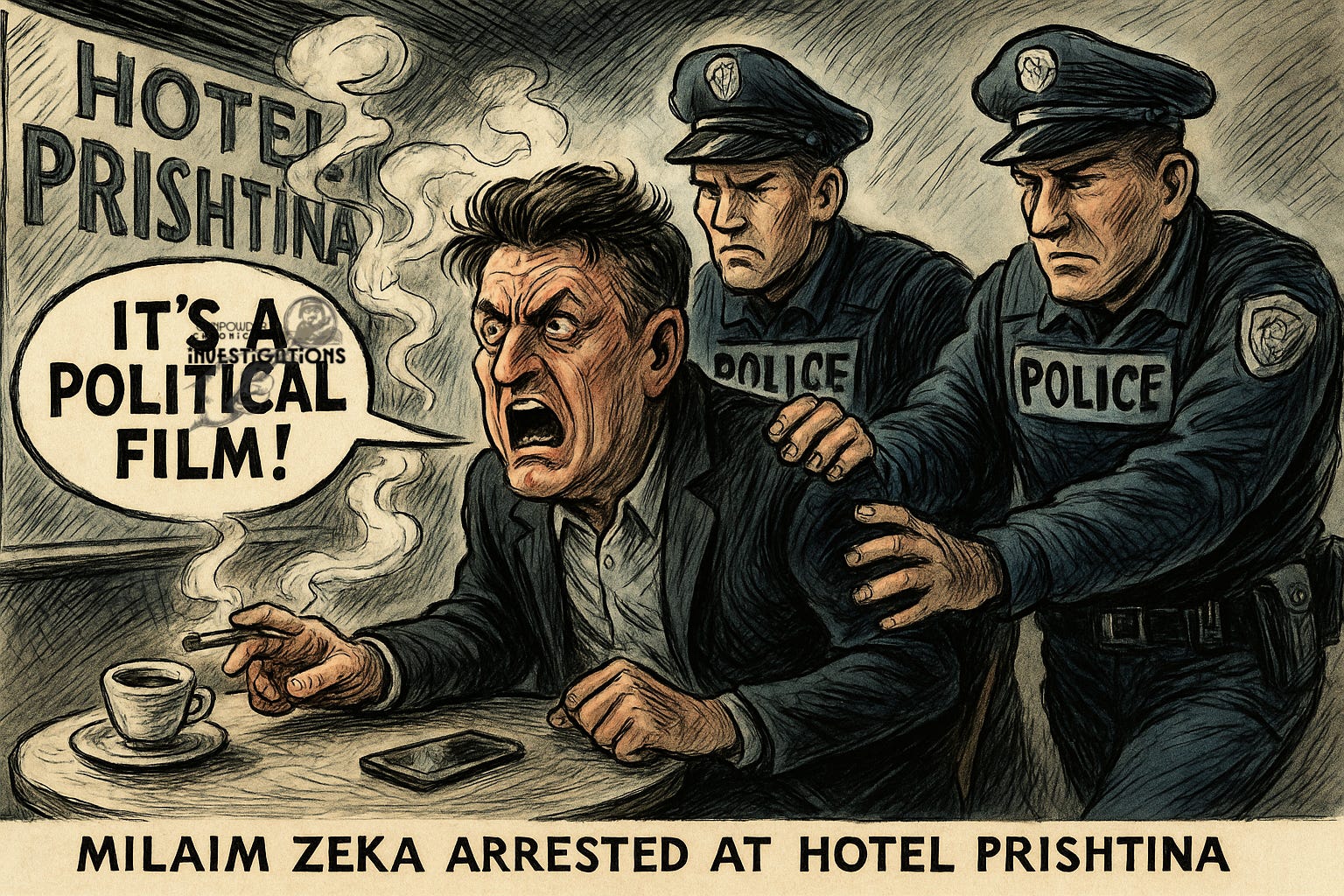 On the morning of the ninth of October, Milaim Zeka sat in the corner of the café at Hotel Prishtina, smoking with the composure of a man accustomed to being noticed. His phone lay facedown beside a small espresso; he told anyone who would listen that something “big” was coming. When the police arrived, he did not flinch. He spoke to them in the same tone he would use on television that evening half grievance, half bravado calling the arrest “a political film”. It was, he said, another attempt to silence him.
