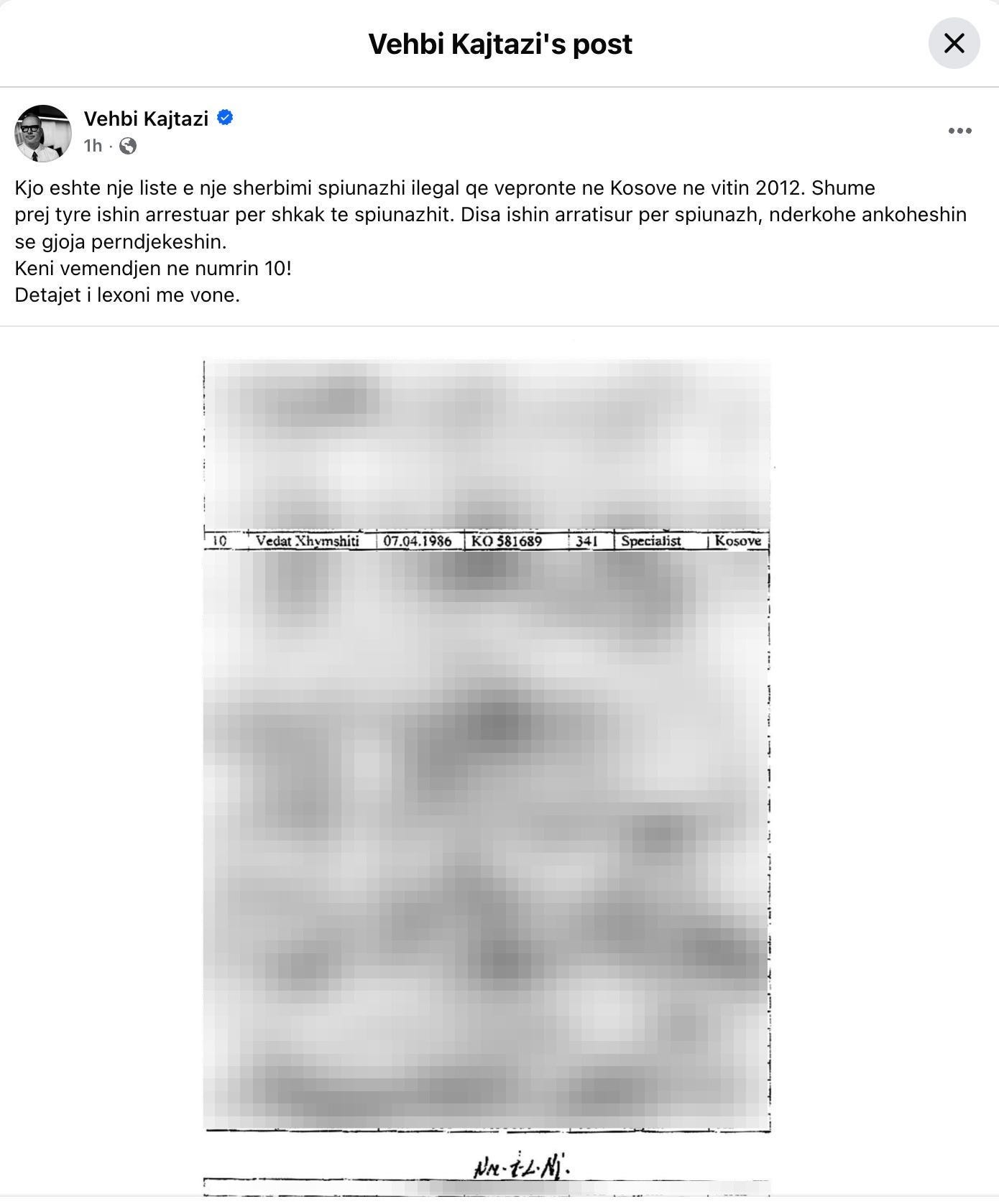 Five days later, on 10 February 2026, the smear evolved from insult into artefact. Vehbi Kajtazi published4 what was presented as a list5, a bureaucratic looking object offered as institutional truth without provenance, without chain of custody, without verifiable issuing authority. The list functioned exactly as such objects do in pressure campaigns. It was faster than proof. It asked the audience to see the name first, feel the contamination first, and only then ask what the document was, where it came from, and whether it could be verified. That inversion is the trick. It makes verification feel like an excuse. It makes doubt feel disloyal.
