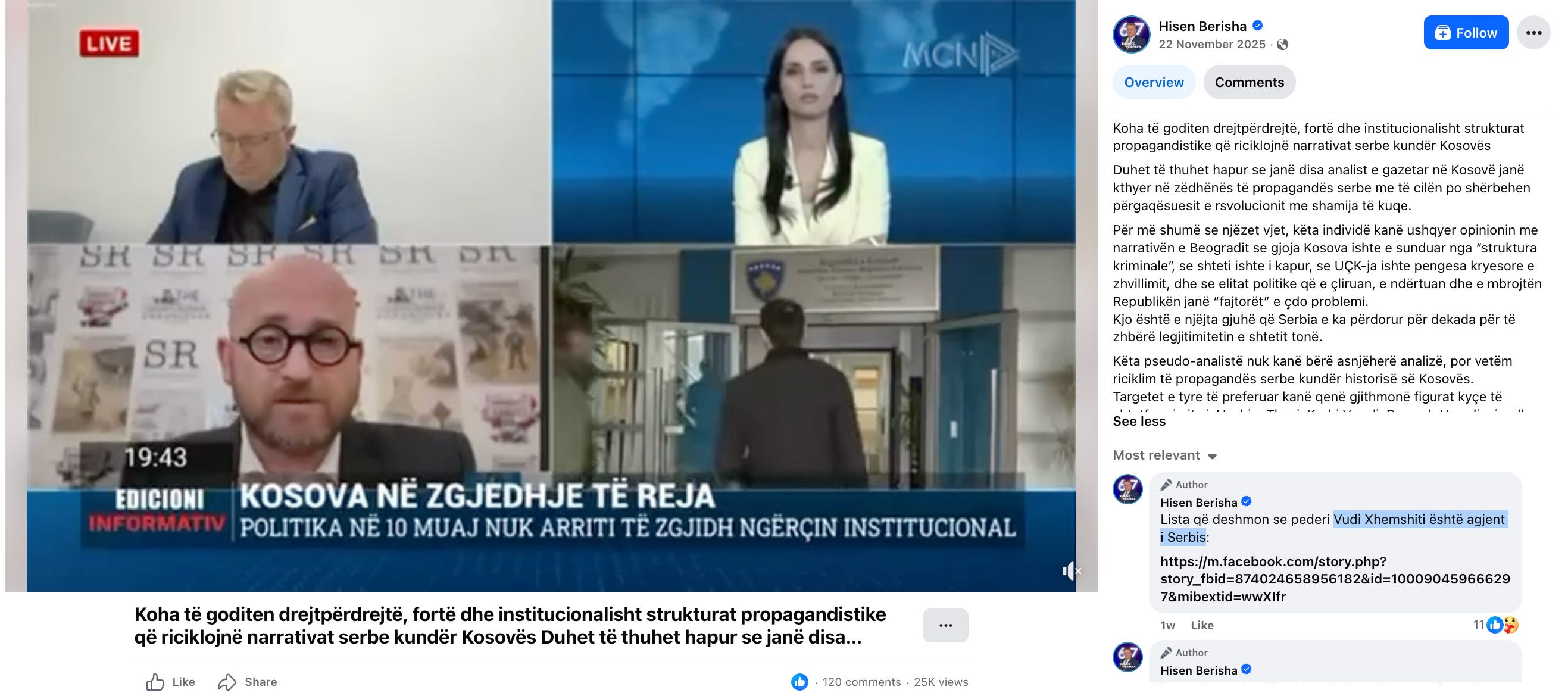 Nov 22, 2025 Facebook Post of Hisen Berisha.