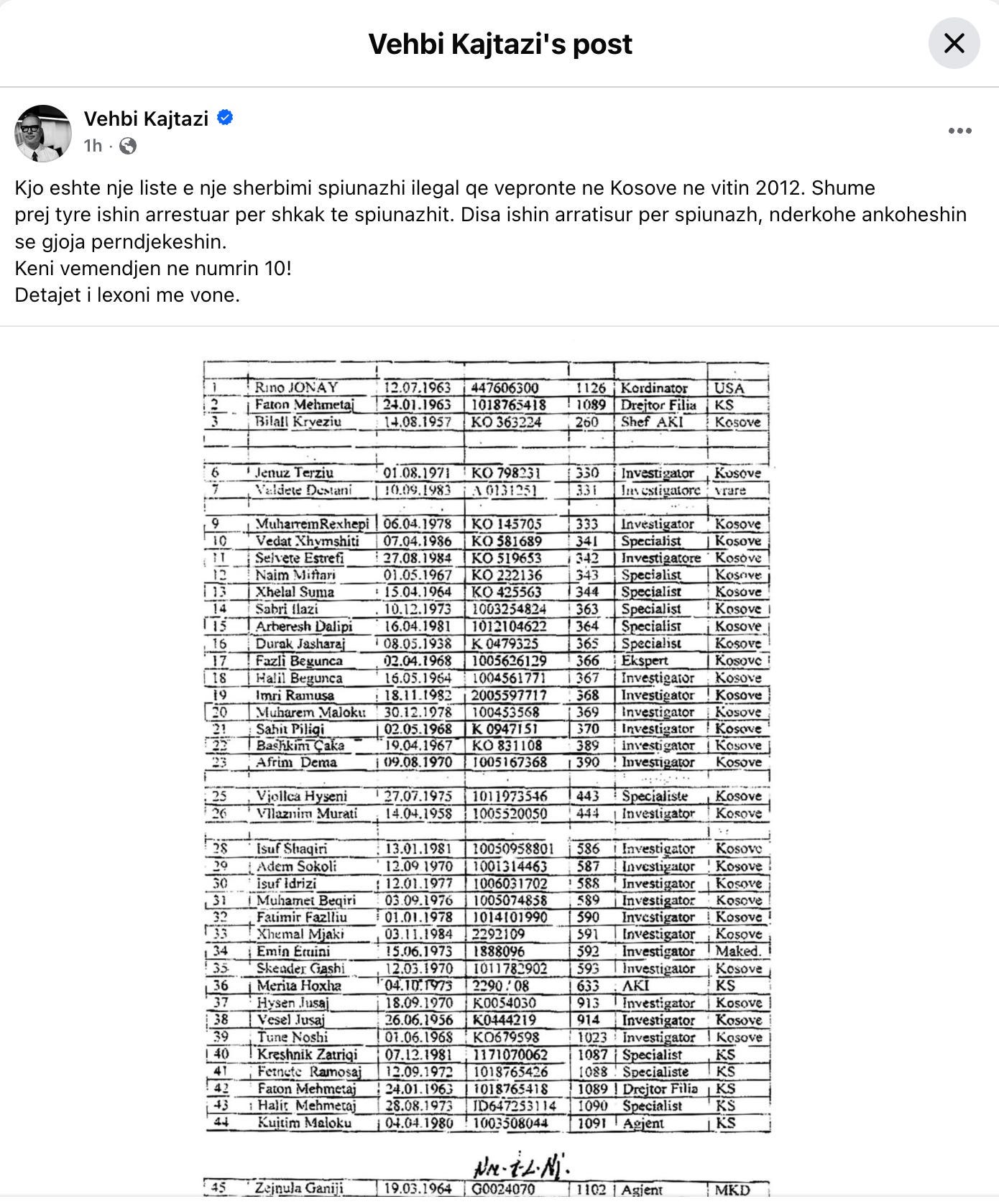 On February 10 we published an investigation1 that examined and debunked the document circulated by Vehbi Kajtazi and presented as evidence of an illegal espionage structure operating in Kosovo in 2012. The document2 named me among its alleged members.