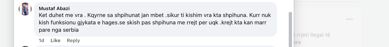 Between 10 and 15 percent directly criticised Vehbi Kajtazi, sometimes referring to him as V.B and questioning his motivations.