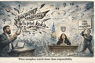 Lirim Mehmetaj named President Vjosa Osmani, invoked beheading imagery, was rebuked by adviser Bekim Kupina, then retreated behind metaphor, exposing…